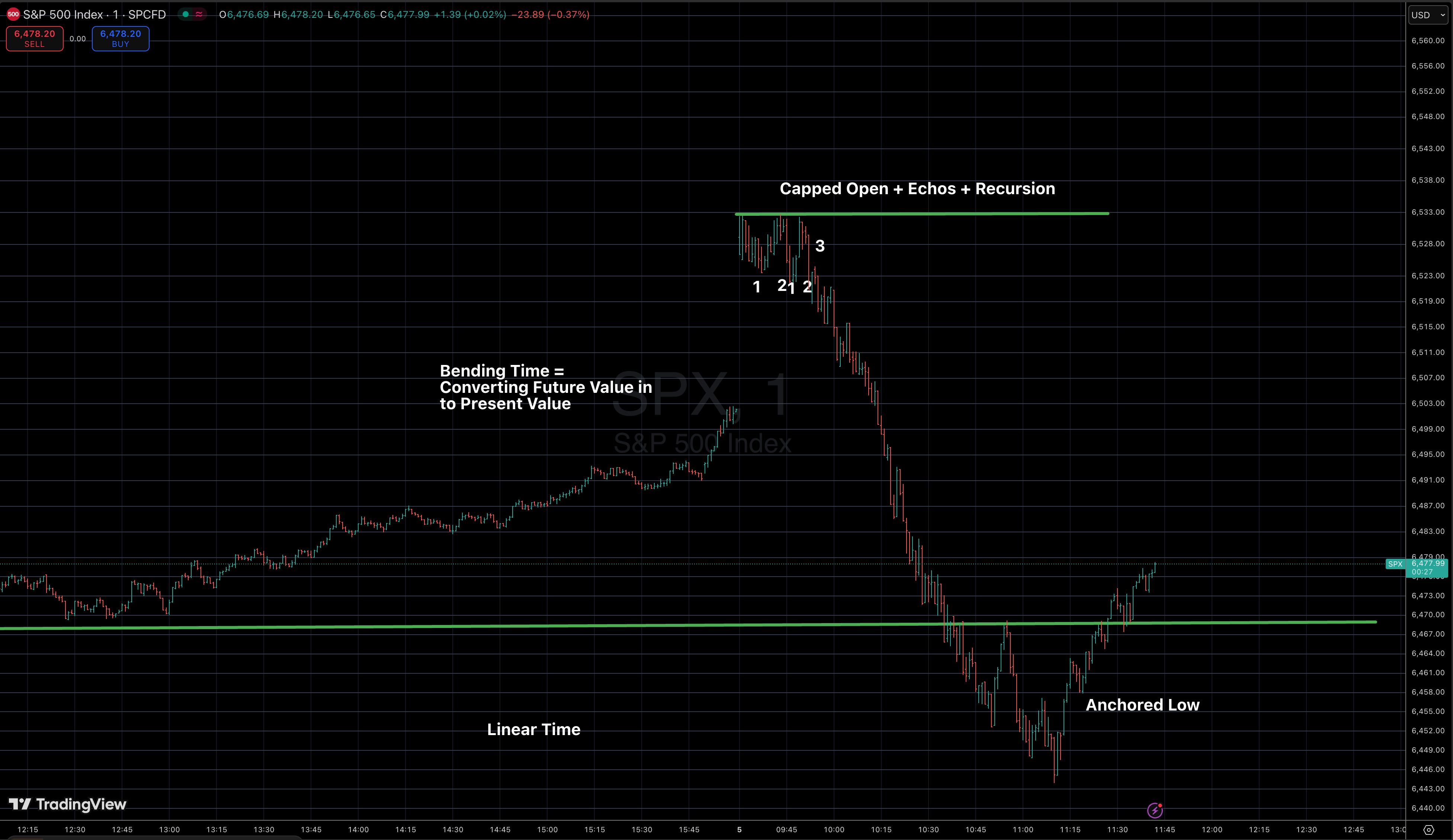 From here, the tape enters a different zone — one where time bends faster. Each burst compresses future value into the present, each move accelerates resolution. That makes this low not just a morning hinge, but potentially the safe zone for the rest of the day.