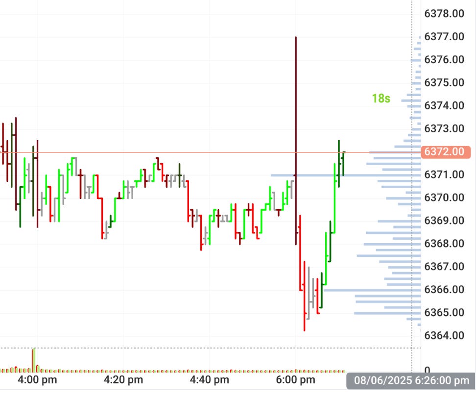 At 3:53 PM, a public note outlined a controlled hold into the futures reopen, explicitly stating an intent to "magnetize a drift higher by 6:00 PM" — conditional on structure holding above 6368.75.