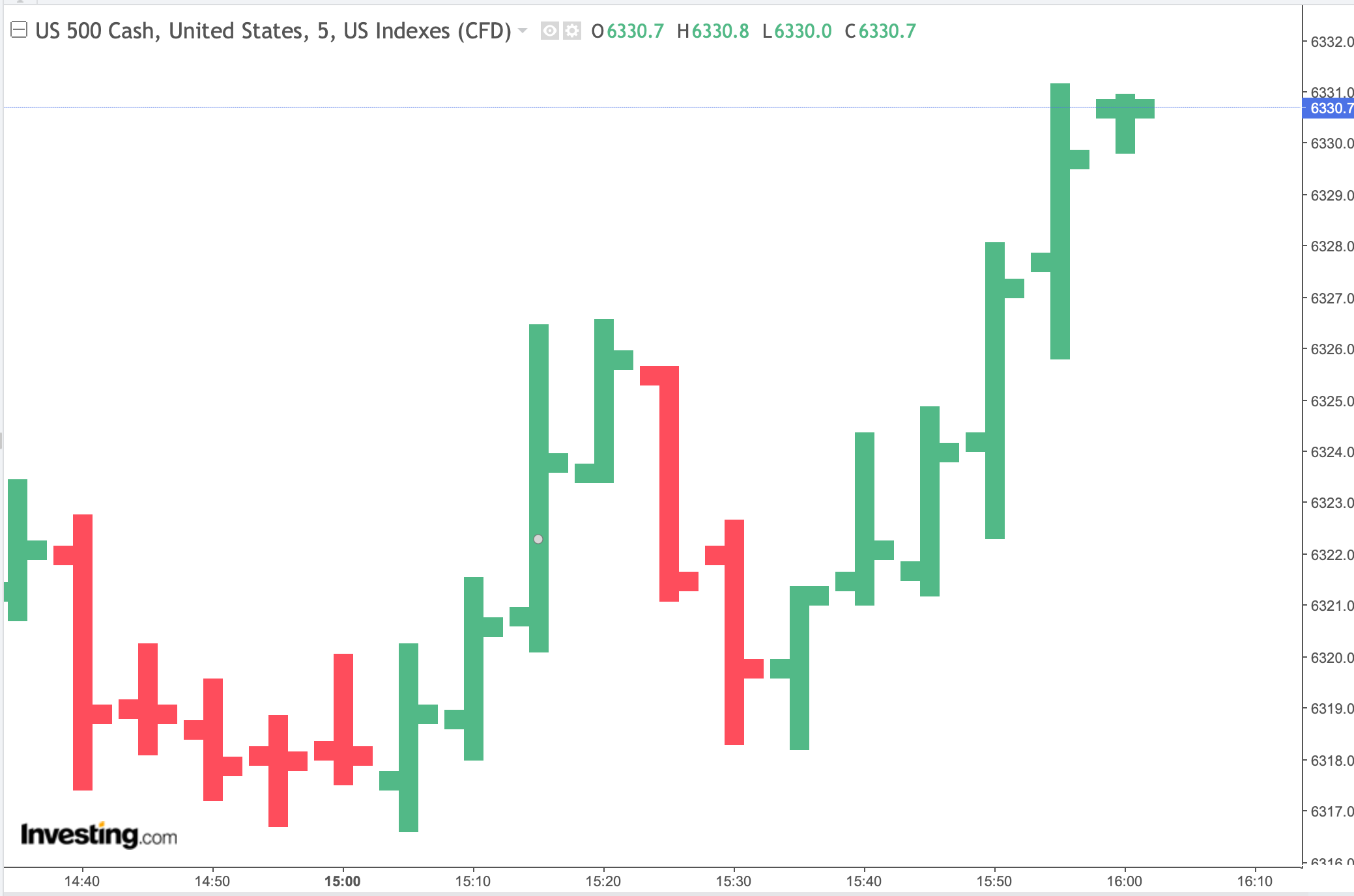 The S&P 500 hadn’t broken the day’s high yet, but the structure was wound like a spring. The tape was heavy with potential—but still undecided.