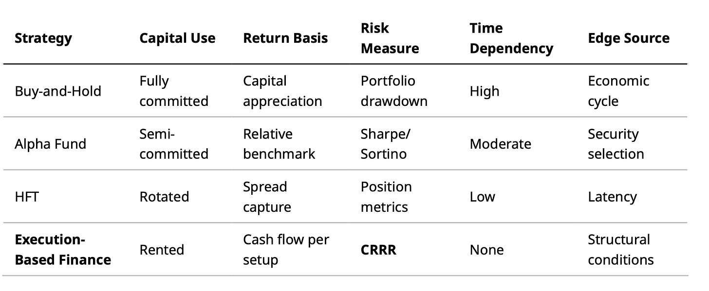 I’m thrilled to share Execution-Based Finance (EBF), a framework I developed to prioritize real-time cash flow extraction over traditional long-term capital appreciation. EBF uses short-term, structurally advantaged market interactions with rented capital, measured by the Cash Flow Return on Risk Rented (CRRR) metric.