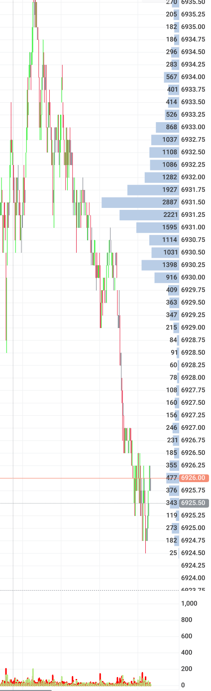 For the first time since the initial authored burst at 1:30 p.m. and its echo, price revisited the 6927–6925 range where that burst was set.