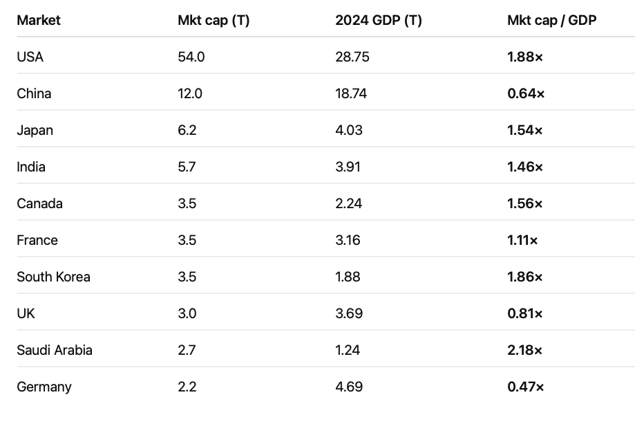 This is such a smart frame for thinking about sovereignty! The mkt cap/GDP ratio as a map of control is brillant - really shows why the US feels structurally different from other major economies. The Saudi Arabia example is wild, basically a state engine with a ticker lol. Makes you realize how much economic freedom we actualy have here compared to most of the world.