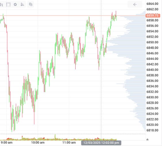 Once magnetized, price becomes resistant to even sharp pullbacks and remains insensitive to catalysts — MSFT flows, ADP releases, whatever.