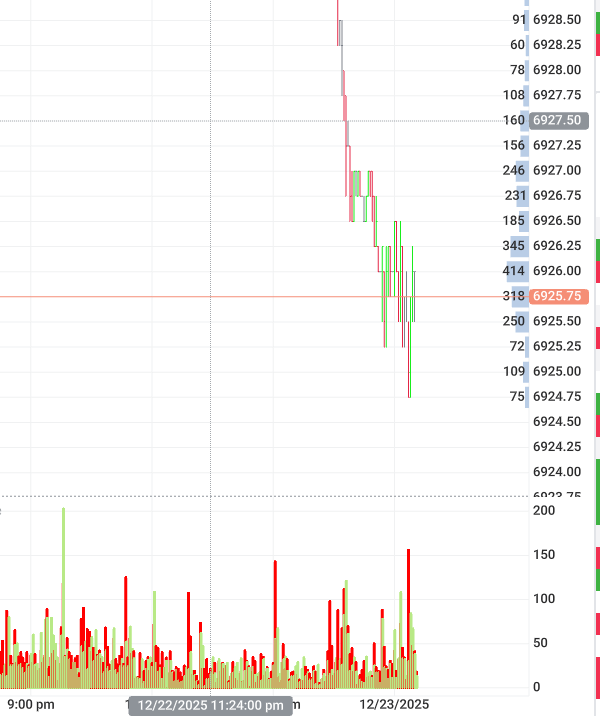 Despite that, price moved cleanly from ~6927–6929 down to 6924 with effectively no drawdown.