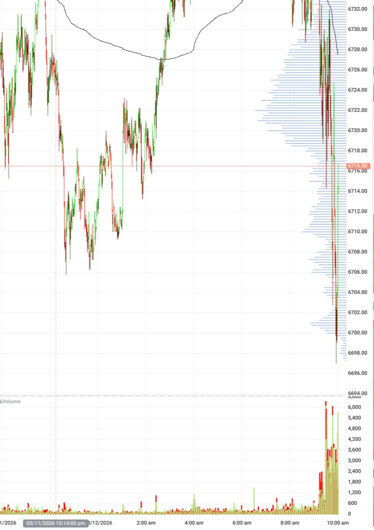 System Memory in Action Peter PhamMar 12, 20261ShareObserve how often 6717 has been crossed through up or down RTH.Observe how volume profiles are shifting lower and lower to align with the magic number. The magic number is our interaction with the tape at that level throughout last year.PreviousNext