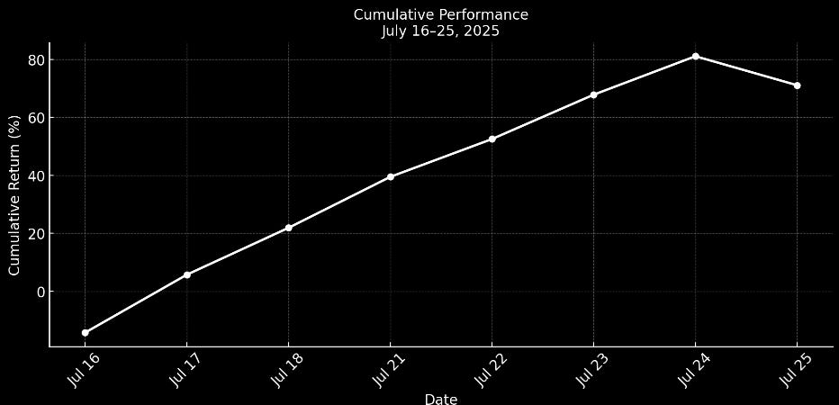 Even with two down days, the compounding of risk-adjusted gains outperformed expectations, showcasing durability and control in a volatile environment.