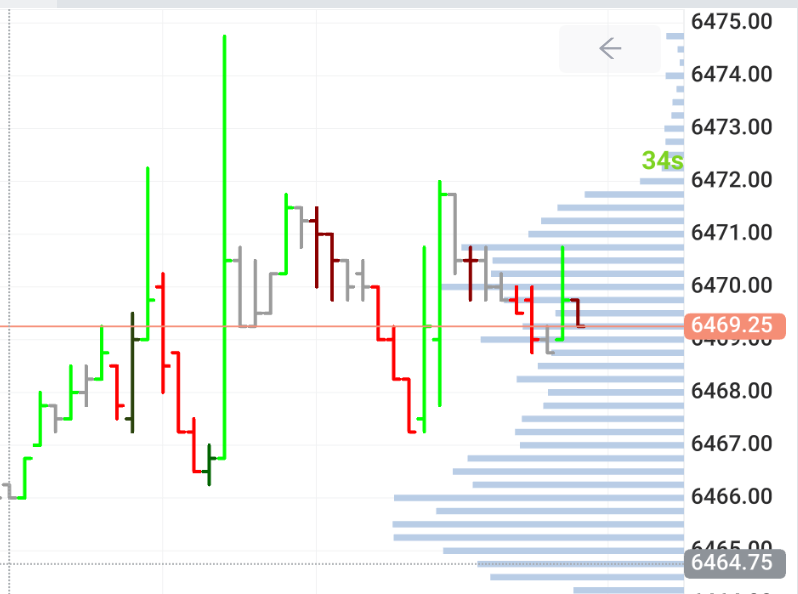 Price oscillated tightly around the 6469–6471 high-volume node, where liquidity providers re-anchored.