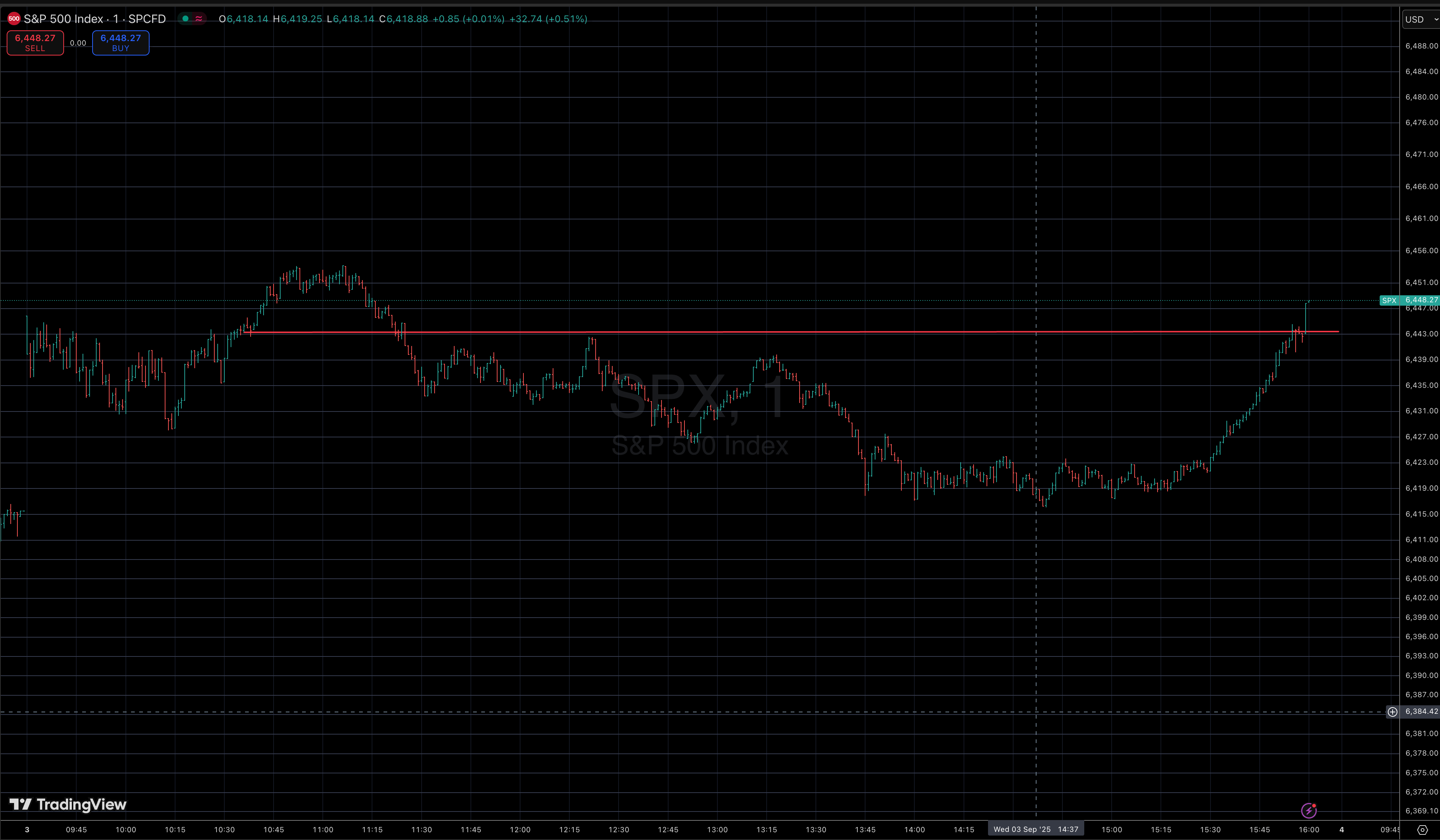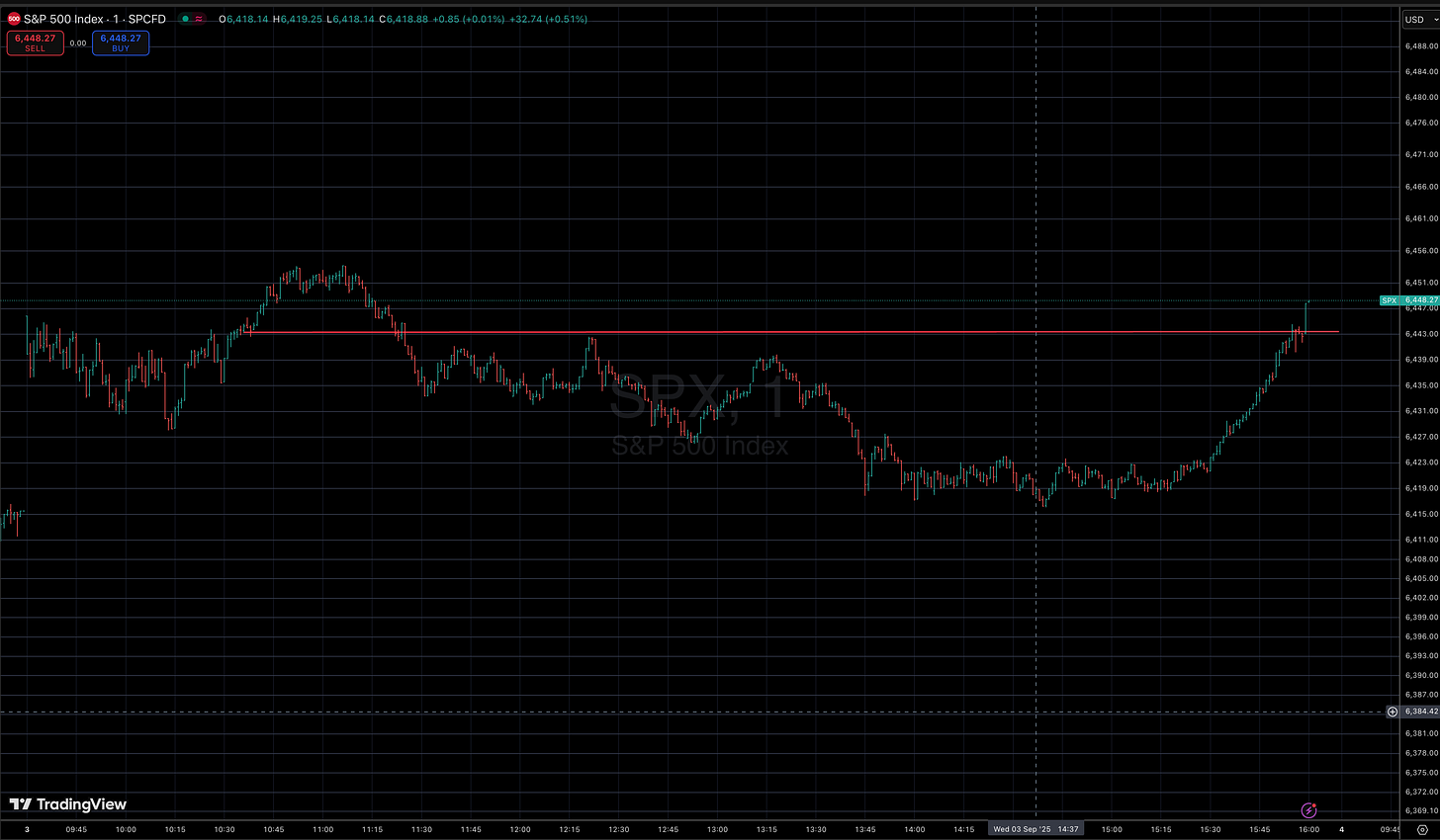 At 3:22:33, I pressed again — 6431.75. Within minutes, the market was 6440.