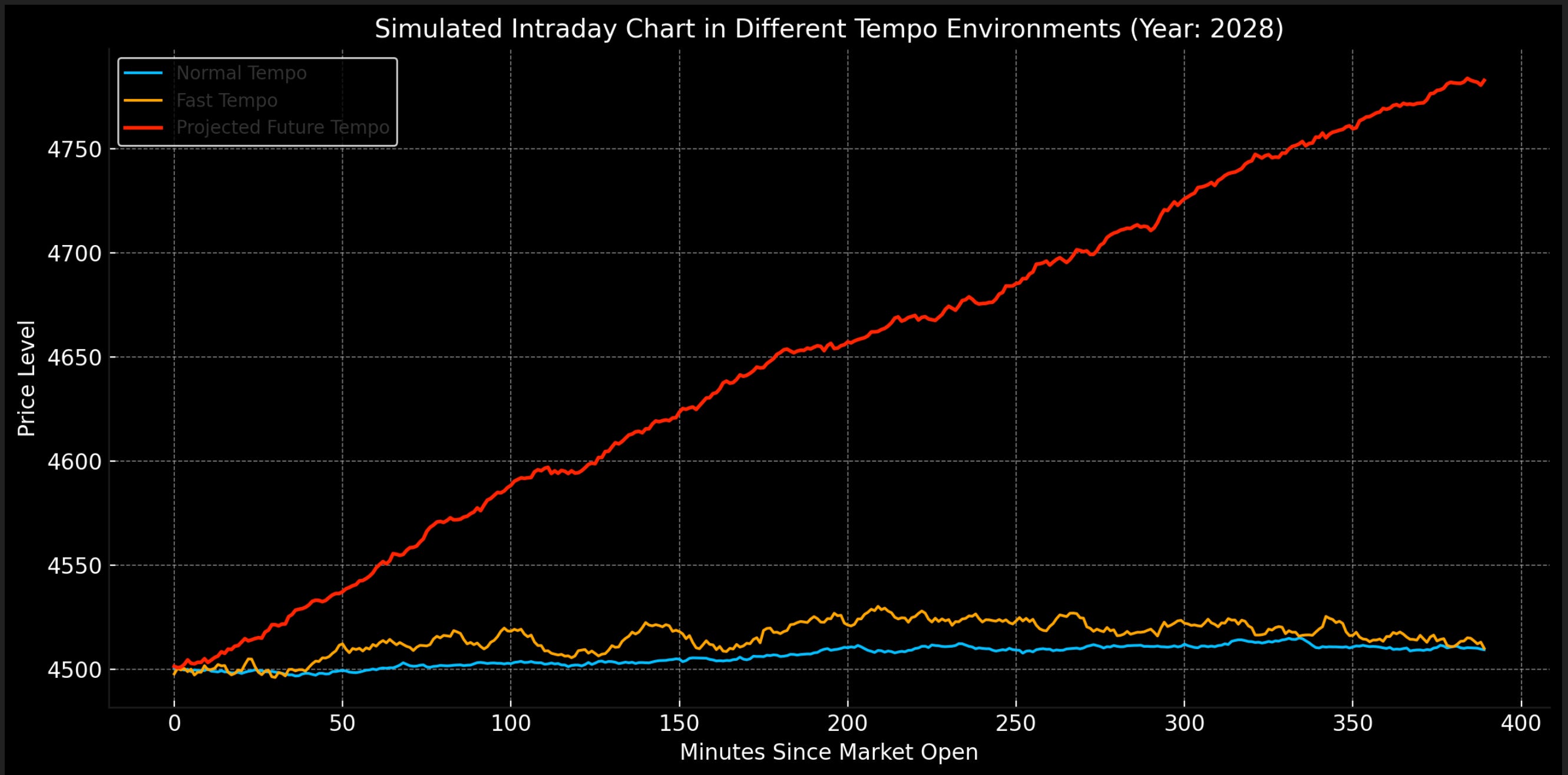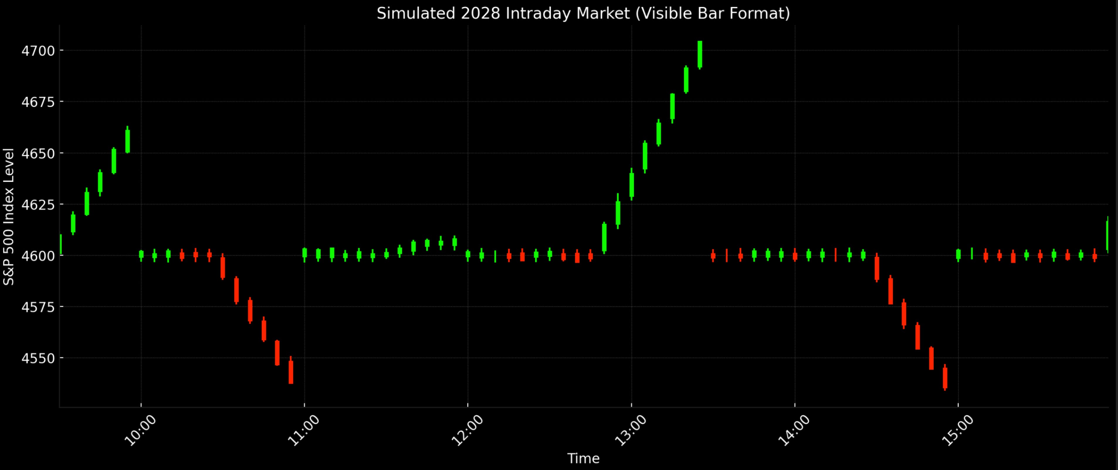 What you’re looking at is a simulated intraday bar chart — not of today’s market, but of what the future will look like under accelerated structural tempo.